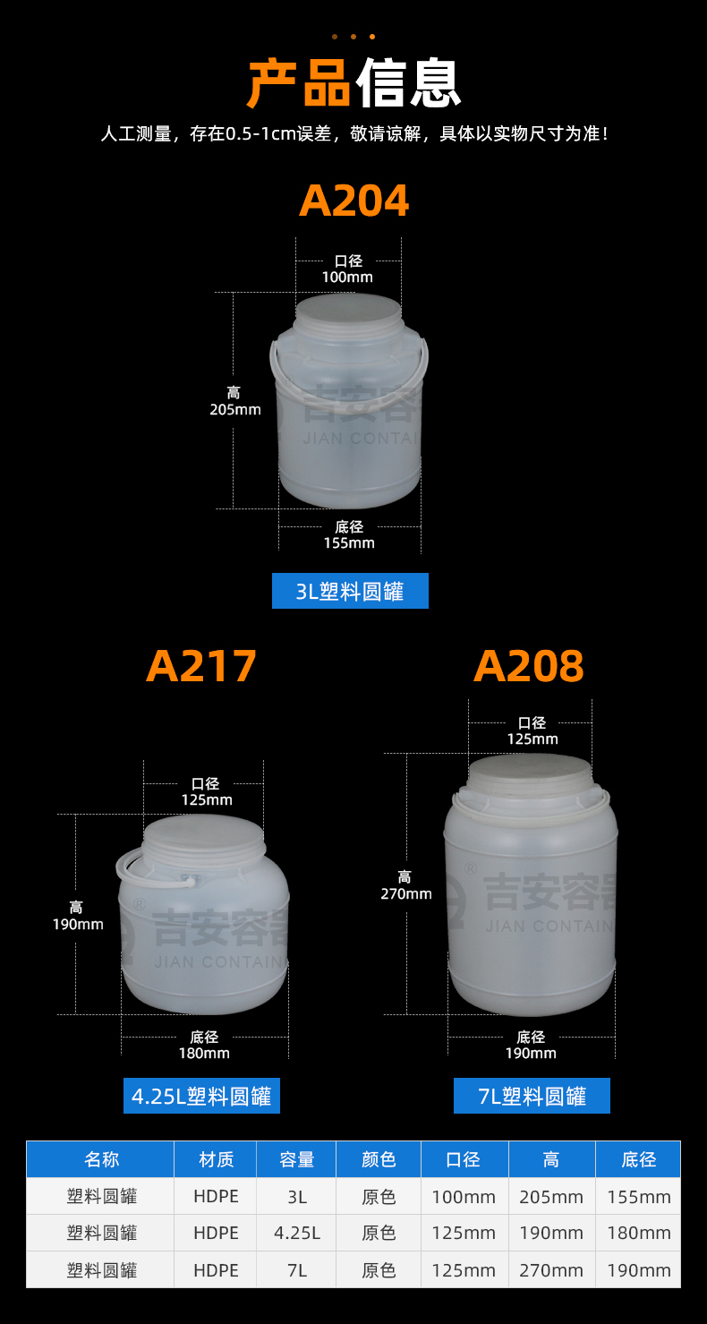 材質(zhì):罐蓋-PP,罐身-HDPE