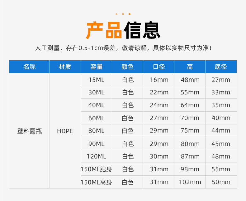 | 品名:15ml~60ml塑料瓶(E107) | |